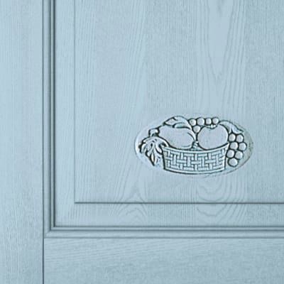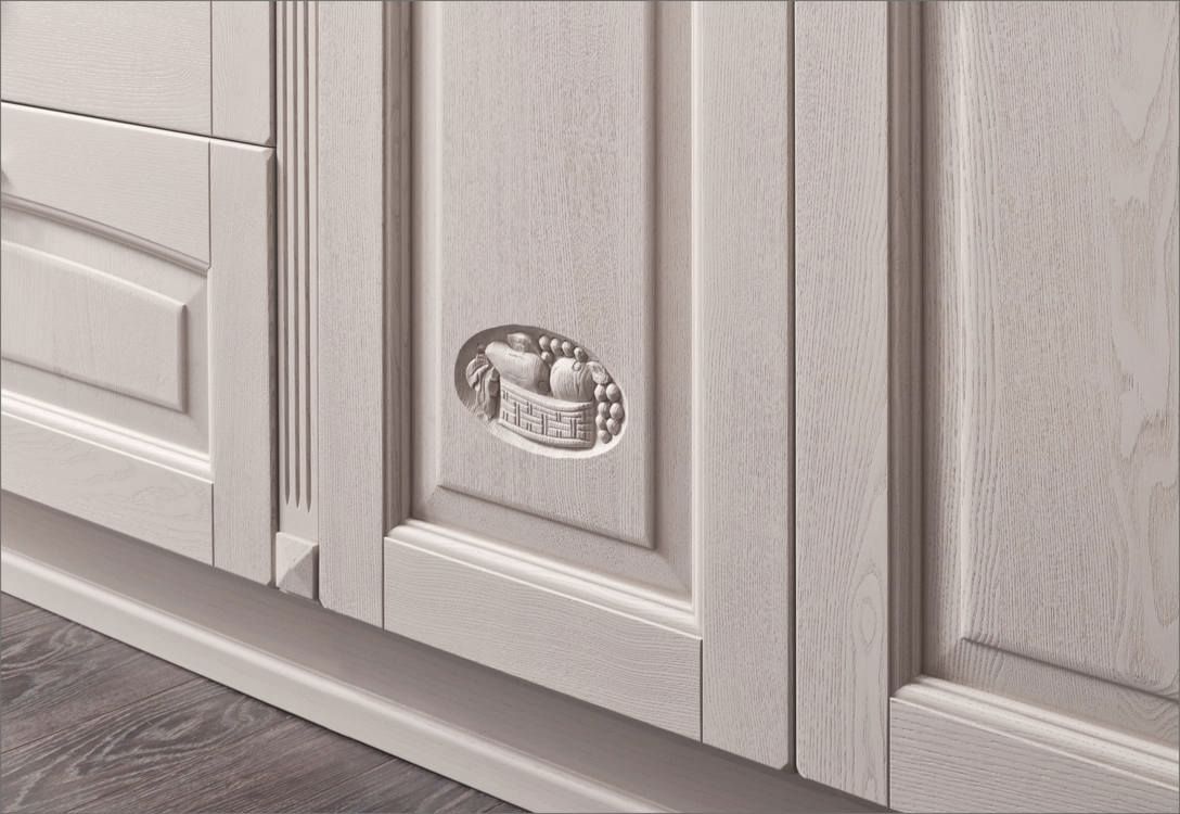 Il modello Barchessa prevede un’anta rovere massiccio di 25mm in finitura rovere chiaro oppure in acacia, in finitura decapé beige o azzurro. L’anta può essere laccata, a richiesta, in tutti i colori della scala RAL/NCS. È personalizzabile con cornici soprapensile e sottopensile in MDF impiallacciato con le stesse possibilità di decorazione dell’anta. Con tutte le finiture si può inserire un decoro intagliato. Lo specchio centrale dei frontali può essere sostituito con un vetro stampato.