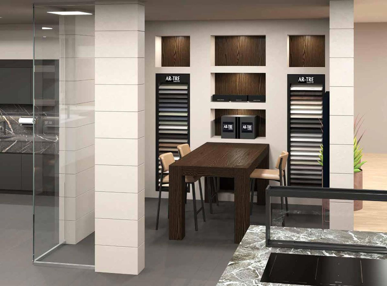 Not a mandatory model, but a source of inspiration - so every retail outlet can find its own way of illustrating Ar-Tre kitchens, skilfully and authentically.