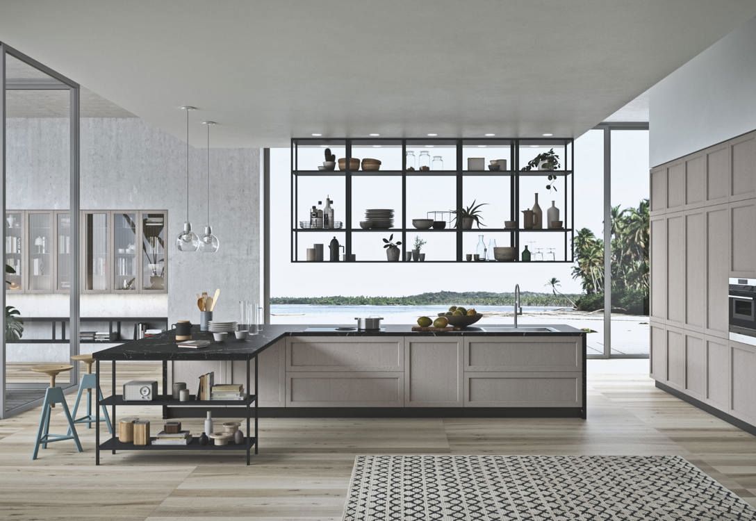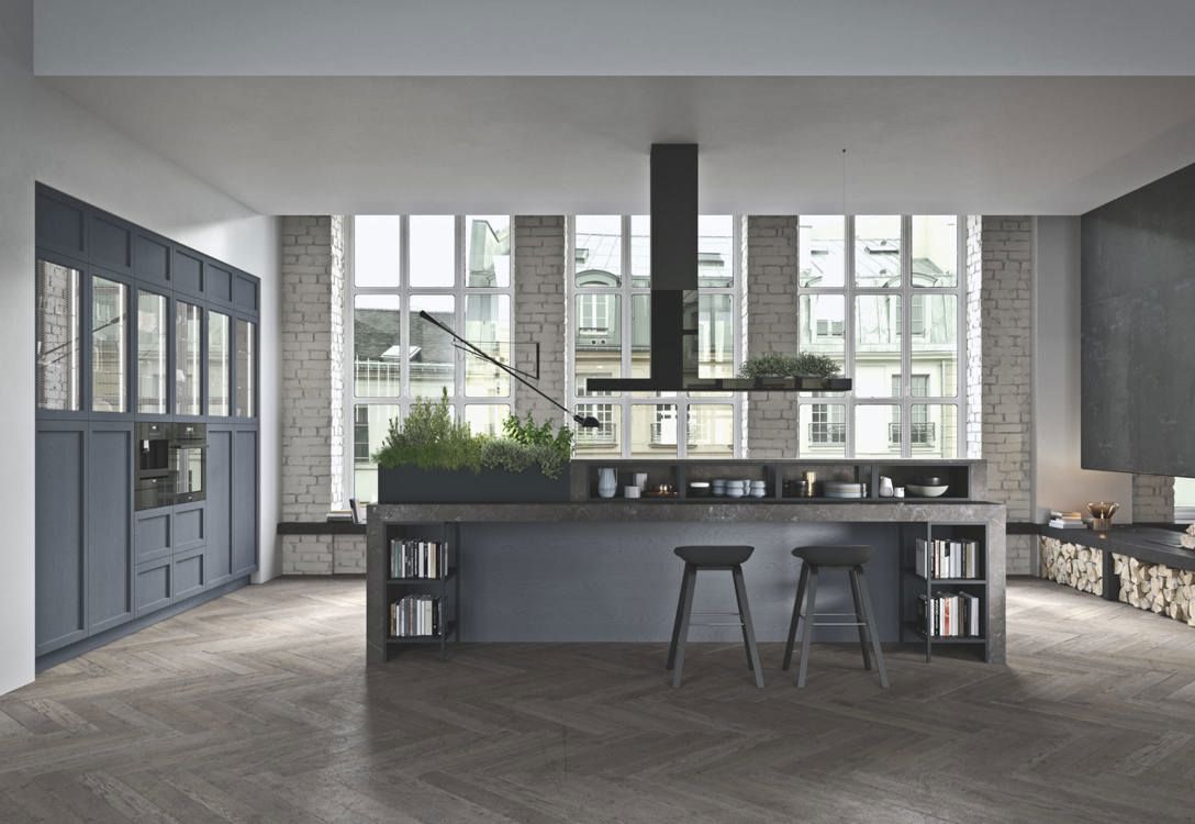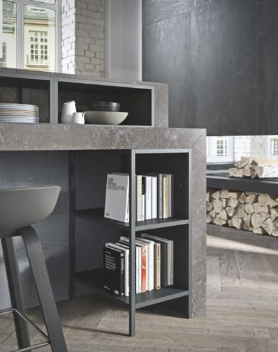 Much more than cabinets: modular elements, puzzle-shaped modular metal shelves, areas and systems that separate, display, store and organise space in the kitchen. It is the hyper storage system that will customise and redesign a contemporary kitchen and living room area.