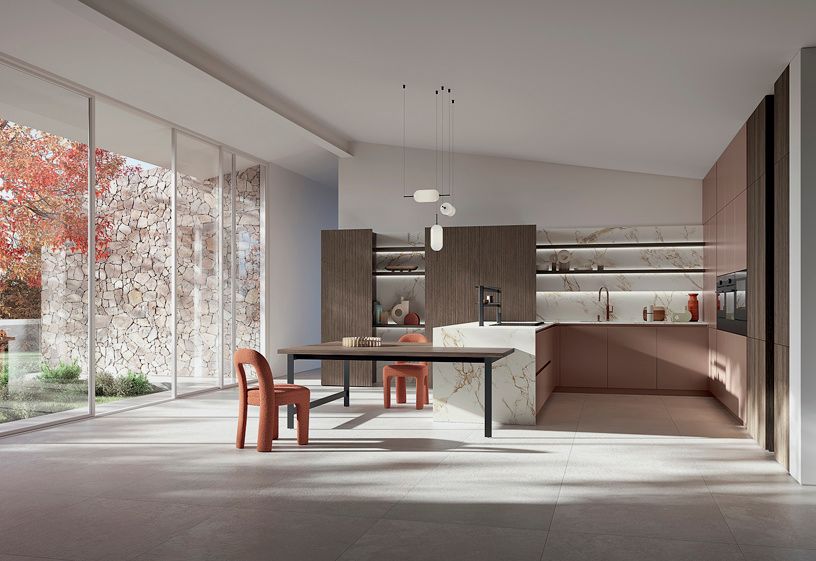 Con il restyling della collezione I Naturali, i materiali diventano i protagonisti di questa narrazione. Ogni elemento della collezione è stato pensato come tributo alla natura e come impegno verso un design sostenibile, considerando il contesto in cui la cucina si inserisce — dal pavimento al soffitto, dagli arredi ai complementi.